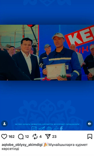 АСТАНА. КАЗИНФОРМ - 6 декабря состоялась церемония награждения одной из престижнейших наград нашей страны - Премии Президента Республики Казахстан «Алтын сапа», Конкурса по социальной ответственности бизнеса «Парыз», республиканского конкурса-выставки «Лучший товар Казахстана», передает МИА «Казинформ». Напомним, конкурс по социальной ответственности бизнеса «Парыз» проводится Министерством труда и социальной защиты населения РК совместно с Министерством энергетики РК, Национальной палатой предпринимателей «Атамекен», Федерацией профсоюзов РК ежегодно вот уже в течение 10 лет. В этом году он проходил под девизом «Парыз - 10 лет успеха». Конкурс направлен на формирование и повышение субъектами частного предпринимательства своей корпоративной социальной ответственности перед обществом для дальнейшего улучшения благосостояния населения. В 2017 году на участие в конкурсе заявлено 400 претендентов со всей страны. Победителям присуждаются звания лауреатов по четырем номинациям: «Лучшее социально-ответственное предприятие», «Лучшее предприятие в области охраны труда», «Лучший коллективный договор», и «За вклад в экологию». Золотую статуэтку в номинации: «Лучшее социально-ответственное предприятие» среди субъектов крупного предпринимательства золотая награда присуждена компании АО «КМК Мунай».